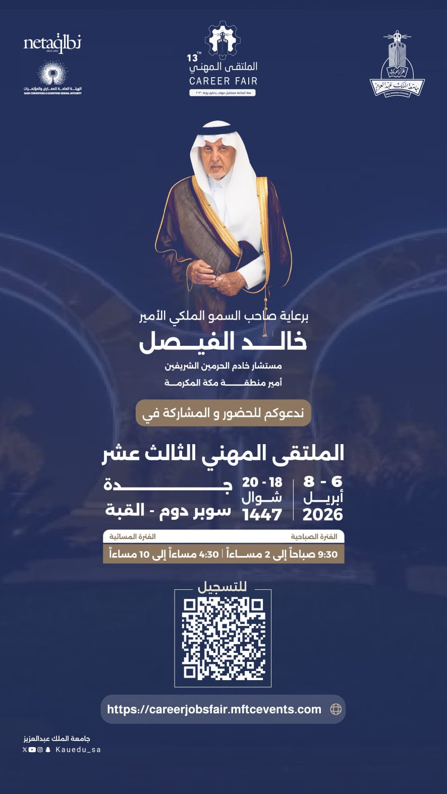 تدعوكم جامعة الملك عبدالعزيز للحضور والمشاركة في الملتقى المهني الثالث عشر